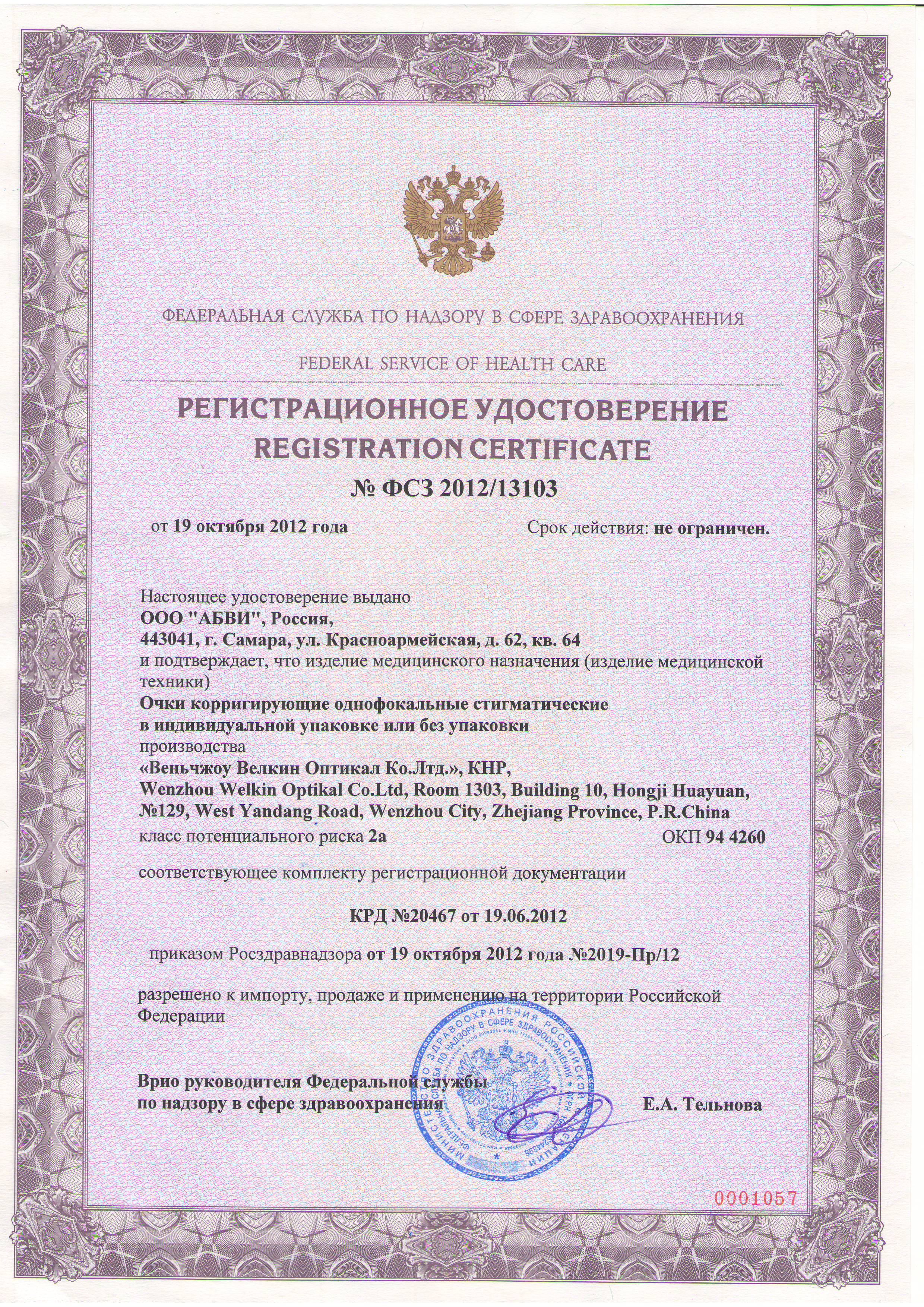 俄联邦居民健康与社会发展监督部(Roszdravnadzor)负责俄罗斯联邦的医疗器械注册证的签发。同时,医疗器械注册证书还是认证机构签发GOST R证书的基础。医疗器械如果没有医疗器械注册证书是不可能申请GOST R证书的。